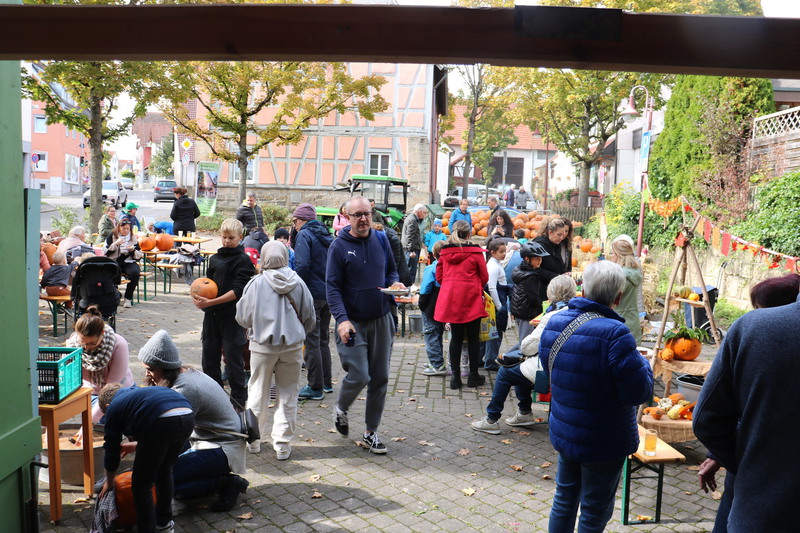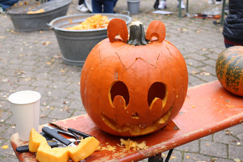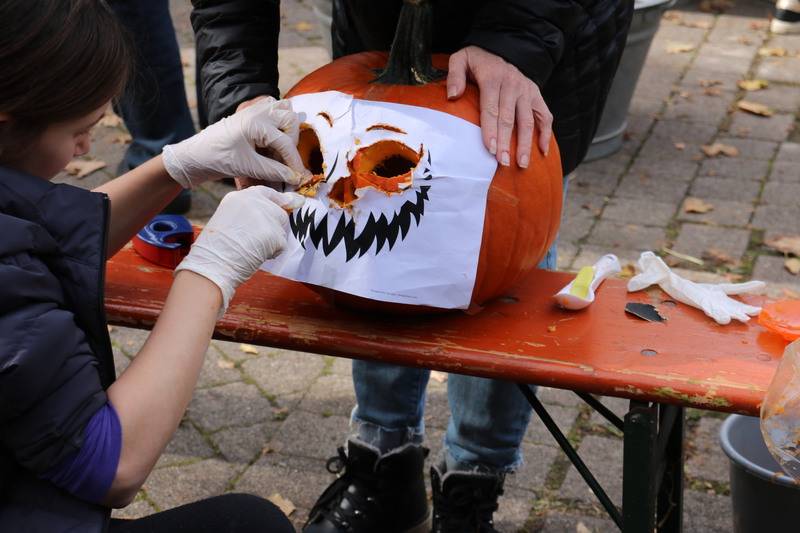 Mit viel Liebe zum Detail dekorierte Anne Schuler mit der Familie Brodbeck den Museumsplatz. Alle Kinder und Jugendliche mit Eltern und Begleiter machten sich schon vorher Gedanken, welches Gesicht entstehen soll. Sei es von ausgedruckten Möglichkeiten bis hin zu Bildern der Kürbisgesichter in den Jahren zuvor. Mit dem sorgfältigen und behutsamen Waschen des eigenen ausgesuchten Kürbisses, begann der Weg zu einem persönlich gestalteten Kürbisgesicht. Es vielen auch Worte der Kinder an die helfenden Hände, wie und wo weitergeschnitzt werden sollte. Sogar eine Mama erschuf aus einem kleinen Zierkürbis für die jüngste in der Familie ein Gesicht.